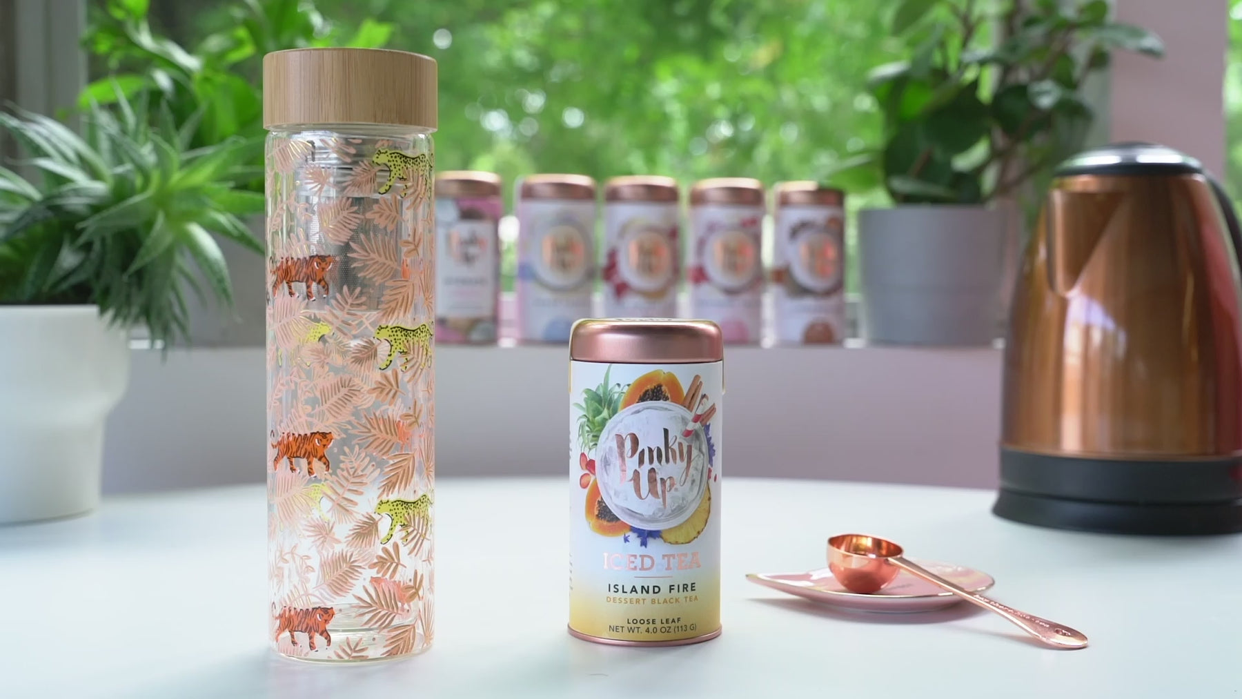 Take tea time anywhere with this chic portable infusing mug. This double-walled 16 oz. mug keeps drinks at the perfect temperature while staying cool to the touch. Includes a detachable strainer and infuser for loose-leaf tea.